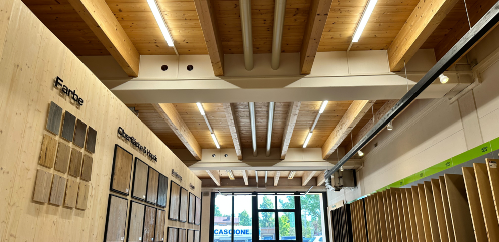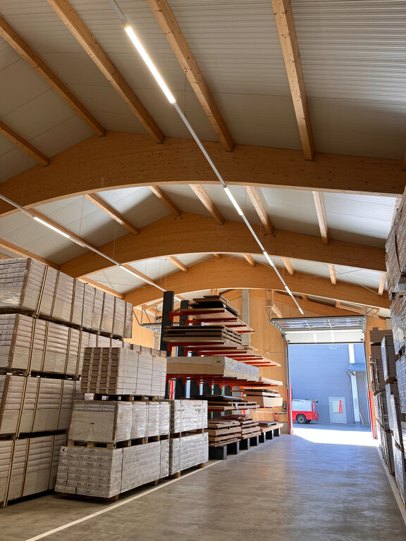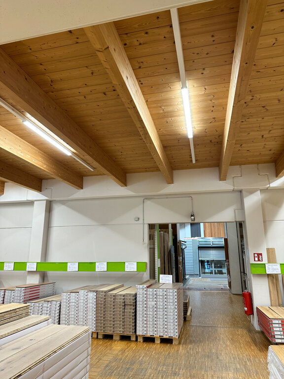 With 118 years of history, Geyer Holz is a company with a long tradition. On the 10,000 m² site of the wood speciality store, customers can experience the variety of products at first hand. An appealing design of the sales areas is therefore crucial, which is why particular attention was paid to the lighting during the refurbishment of the storage and exhibition halls: This was to optimally illuminate the various hall areas, create a pleasant atmosphere for customers and at the same time be robust and efficient.