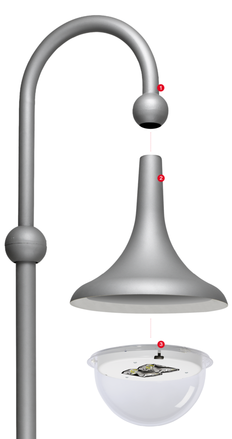 A mast lasts a good 50 years, thus the mast and bracket are usually retained during modernization. The housing is easy to mount and connect, having featured a bayonet lock since 2002.