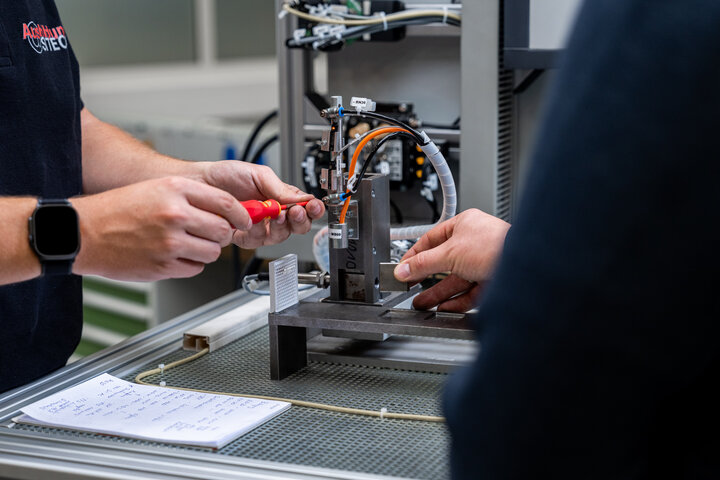 So far I have spent a lot of time in the training workshop where I have done the basic metal and electrical courses. I am currently doing the basic PLC course, where I am learning all about programming systems. What I like about the training is that the trainers are there to support you and help you wherever they can. The working atmosphere in the training workshop is also good. We also strengthen our team by going on an excursion once a year.