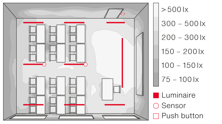 - Uniformly good lighting conditions allow flexible use of the space.