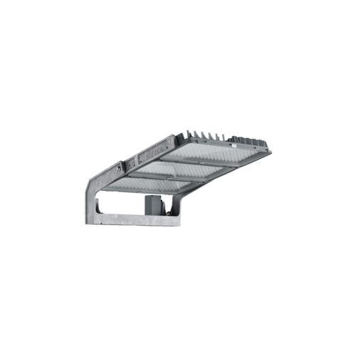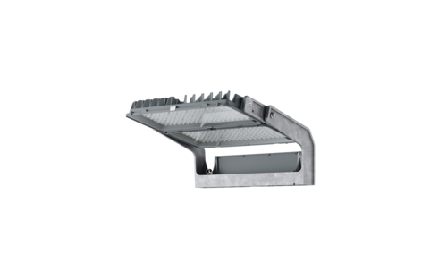 Wide beam floodlight with excellent asymmetrical light distribution and internal backlight control reflector.