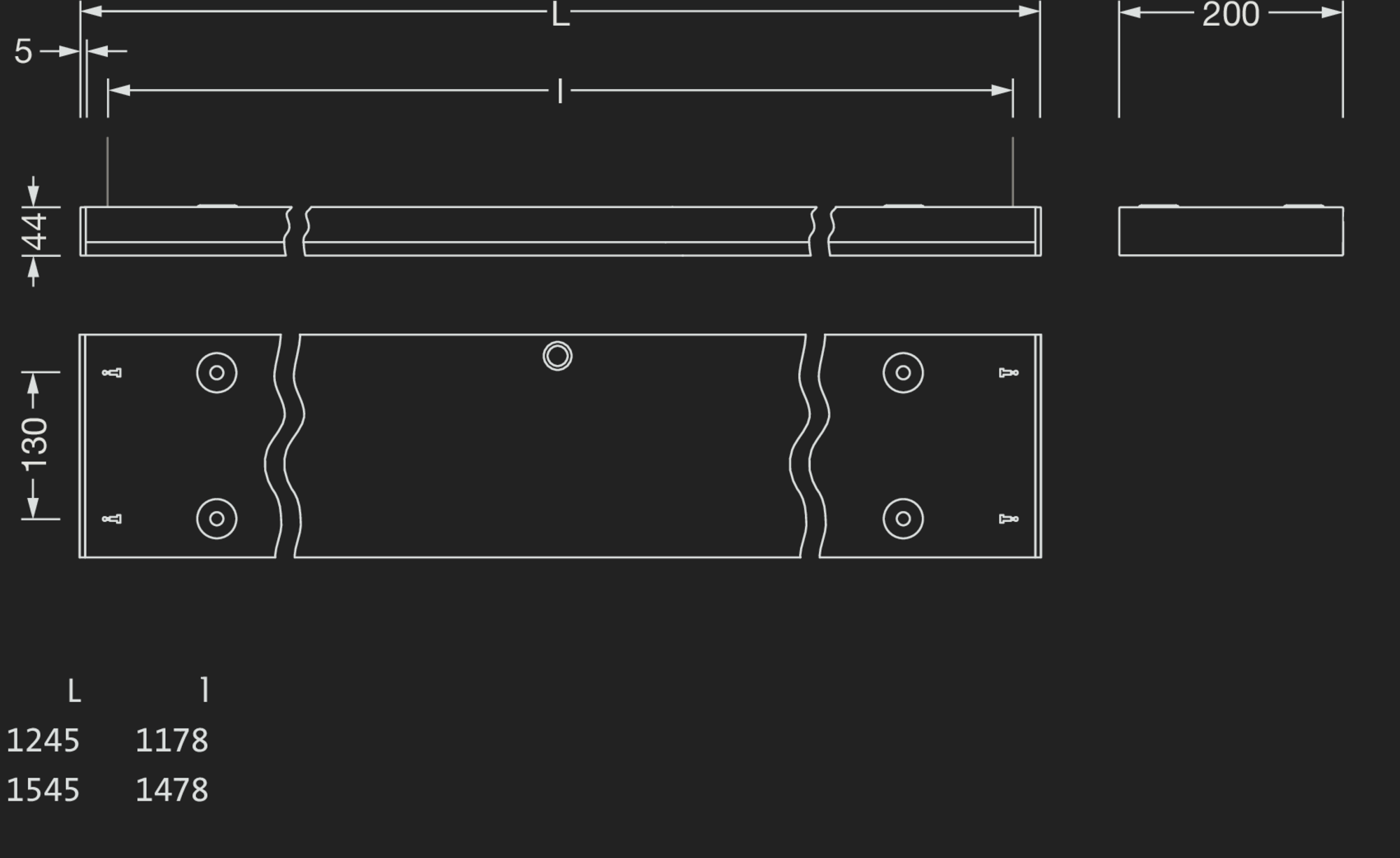 | 3000K | CRI > 80 | 4400lm | 33W | 133lm/W | ON/OFF Multilumen | metallic grey (RAL 9006) | 1545x200 | 4.1 | 306.70 |