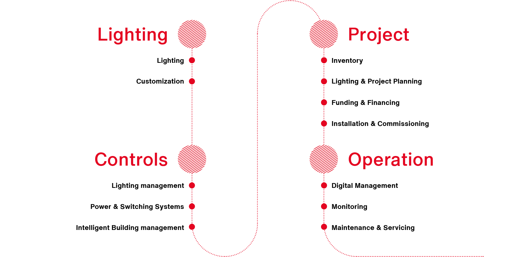 Light embedded in a flexible digital infrastructure with open standards: Optimal lighting, maximum efficiency, and environmental protection—anytime, anywhere.