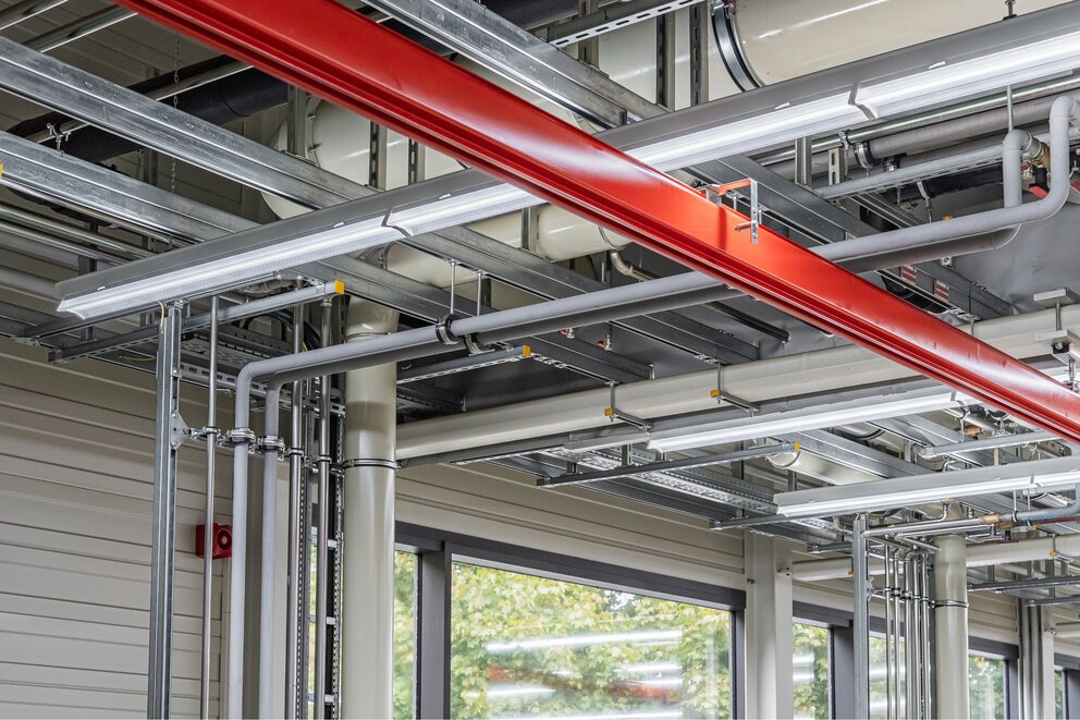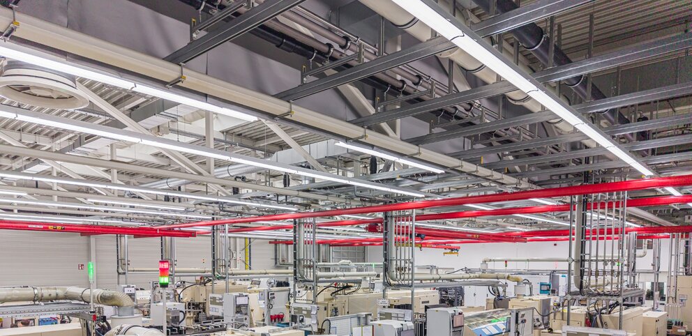 In one of the production halls, the conversion to the powerful SITECO Licross 11 trunking system resulted in a future-oriented lighting concept that focuses on people while also meeting the high demands of manufacturing.