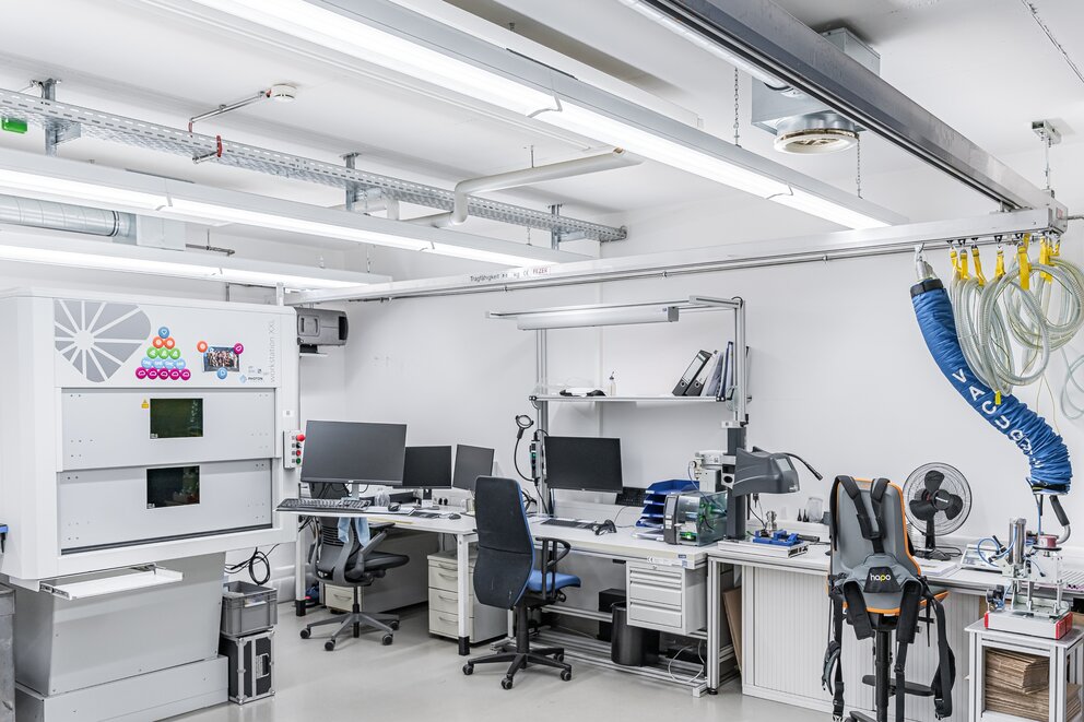 The light colour dynamically adapts to the three-shift operation via the on-site KNX system: depending on the time of day and activity, it ranges between 2,700 K and 6,500 K, creating a noticeably more pleasant working environment: employees report better sleep, higher concentration and less fatigue.