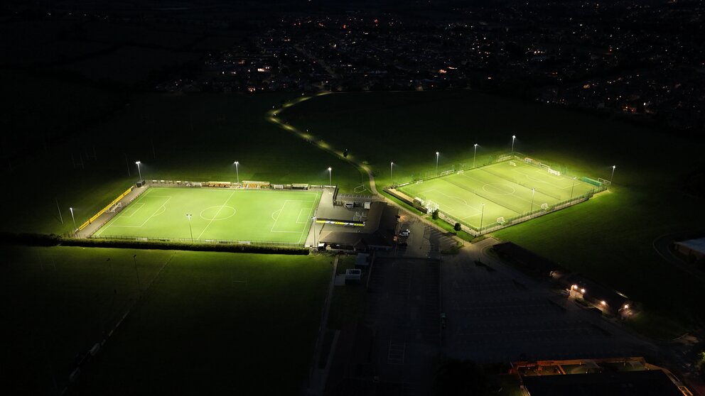 This project not only represents a major technical upgrade but also benefited from the use of two different funding grants, which helped finance the new lighting system. As a result, Harborough Town FC has been able to reduce its energy consumption and lower costs while also minimizing its environmental impact, thanks to the superior efficiency of the FL 11 floodlights compared to the old system.