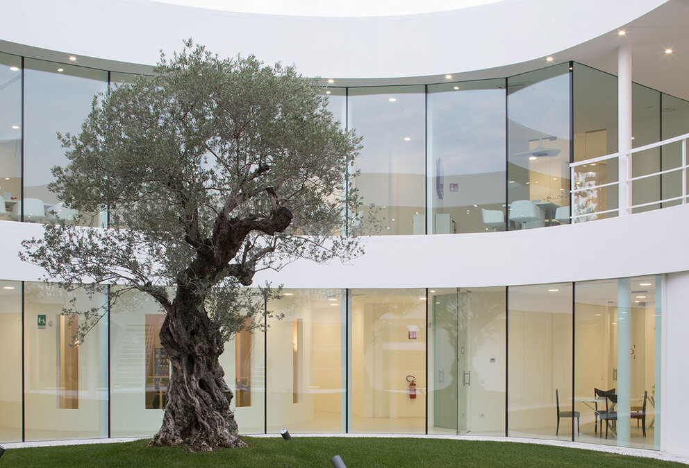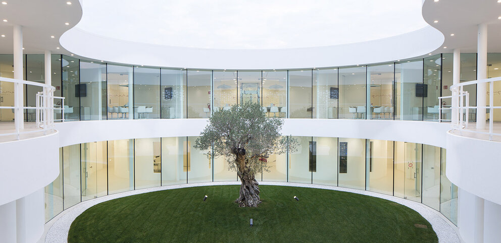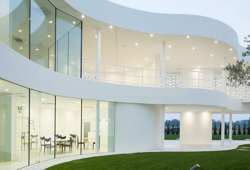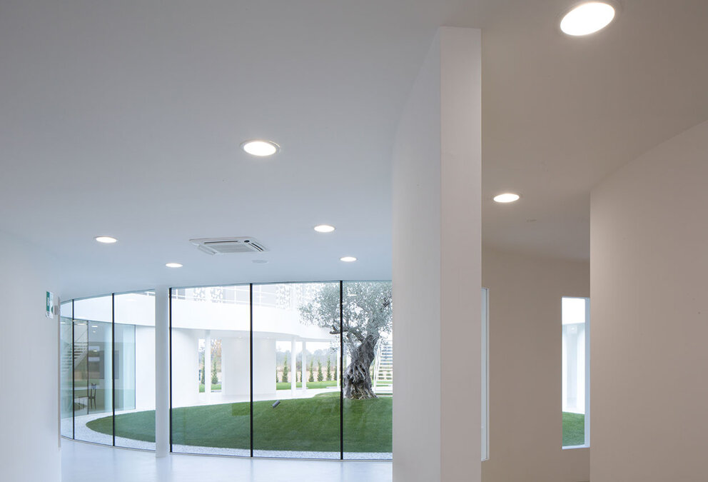 It’s clear at first glance: This is no ordinary company headquarters. In September 2017, the new headquarters of the cosmetics company Omnicos opened in the Italian municipality of Bagnolo Cremasco, where the administration, research and development and production departments are located. The outdoor area and the office building were equipped with LED lighting from SITECO. Thanks to the unobtrusive integration and precise illumination that perfectly stages the architecture, the project met the strict aesthetic requirements.