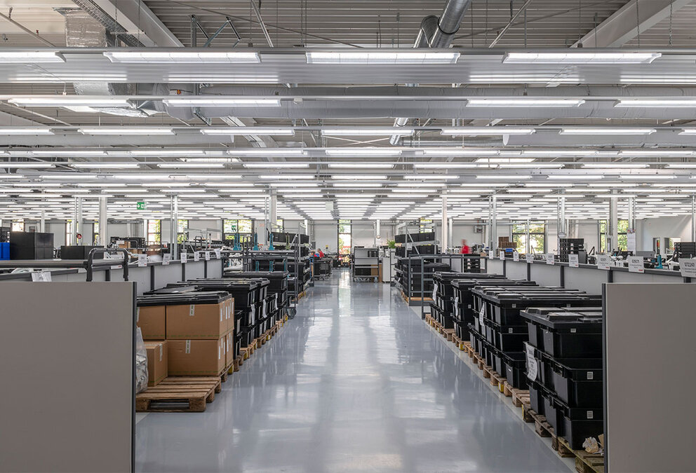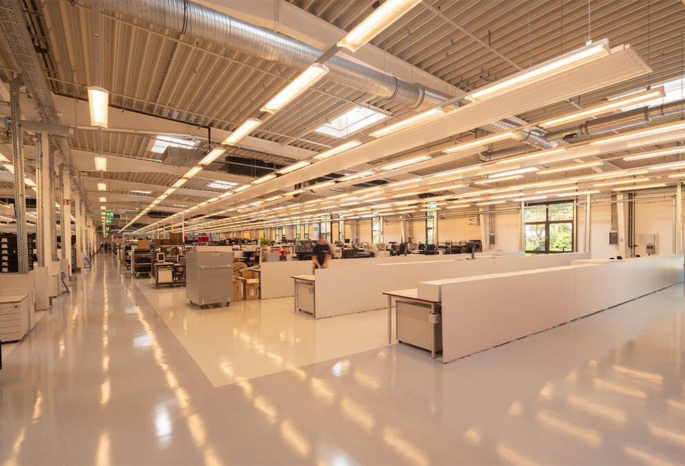 Outstanding lighting, improved productivity, well-being and maximum energy savings: In a production hall at the automation specialist Beckhoff Automation in Verl, Germany, SITECO shows an idealistic example of the capabilities of intelligent light in an industrial environment By combining an innovative lighting and control solution, the project generated an HCLlive solution that improves employee motivation and well-being by individually adjusting the light dynamics.