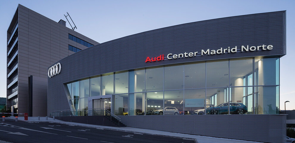 SITECO illuminates Spain's most important Audi subsidiary. From access way to vehicle handover and showroom to workshop – SITECO installed the complete lighting for the new Audi Center Madrid. With project-specific special luminaires, an integrated lighting approach was implemented that efficiently and elegantly supports the brand’s claim, blends into the concise Audi design and provides ideal light in all areas. Thanks to our customizing expertise, we were able to optimally meet the individual requirements of the customer.