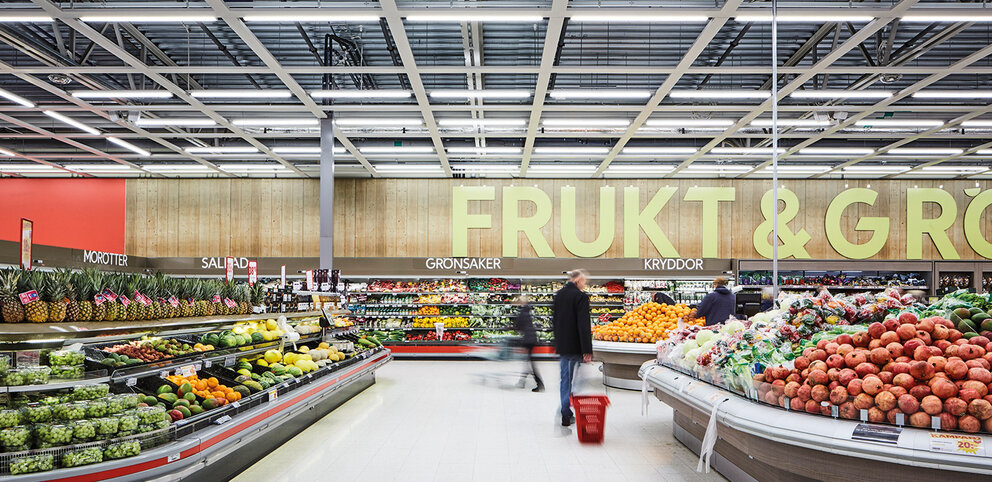 The brick-and-mortar store has to rethink itself, become a place to linger and browse. Nuanced lighting scenarios for fruit racks, fresh produce counters and other store areas create the appropriate atmosphere for improving confidence in the products. The ICA Maxi store in Jönköping, Sweden, has redesigned sales areas by refurbishing the lighting system with the SITECO Modario® trunking system while simultaneously achieving a significant reduction in energy and maintenance costs.