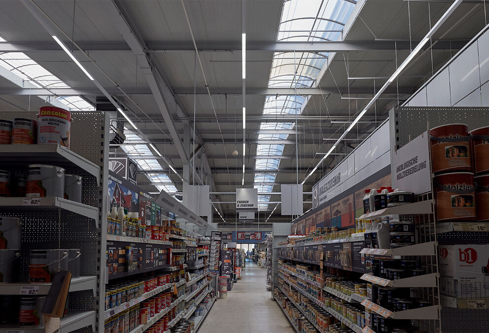 Home improvement stores carry everything a do-it-yourselfer might need. The goal was to give the versatile product range of the toom DIY store in Bad Saulgau a more attractive presentation. After all, the design of retail space is a main success factor for brick-and-mortar retailers. By refurbishing the lighting system with the SITECO Licross® trunking system, the DIY store shines in a new light and impressively shows the effects of sustainable lighting technology. 70 % savings in energy costs by converting to LED lighting.