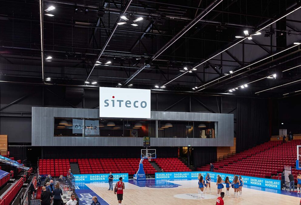 In modern sports arenas, light is the real high-performance athlete, just like Sirius®. In the MartiniPlaza in Groningen, the floodlight from SITECO delivers several records. It combines high-power technology with homogeneous, glare-free illumination and brilliant color rendering. David Wassenaar, technical supervisor of MartiniPlaza, is enthusiastic: "We were able to play the first game of the basketball season with perfectly balanced lighting. As it should be in sports." But the indoor arena is not only home to the world of basketball. For volleyball, tennis and indoor soccer, an integrated DALI control system provides the right light at the touch of a button. In this way, Sirius® ensures ideal visual conditions without glare for players and spectators at all times and effortlessly meets the requirements of broadcasters and sports associations. In addition to technology, SITECO also convinced with its team: Despite Corona, the project team provided comprehensive, reliable support across all departments and in all project phases.