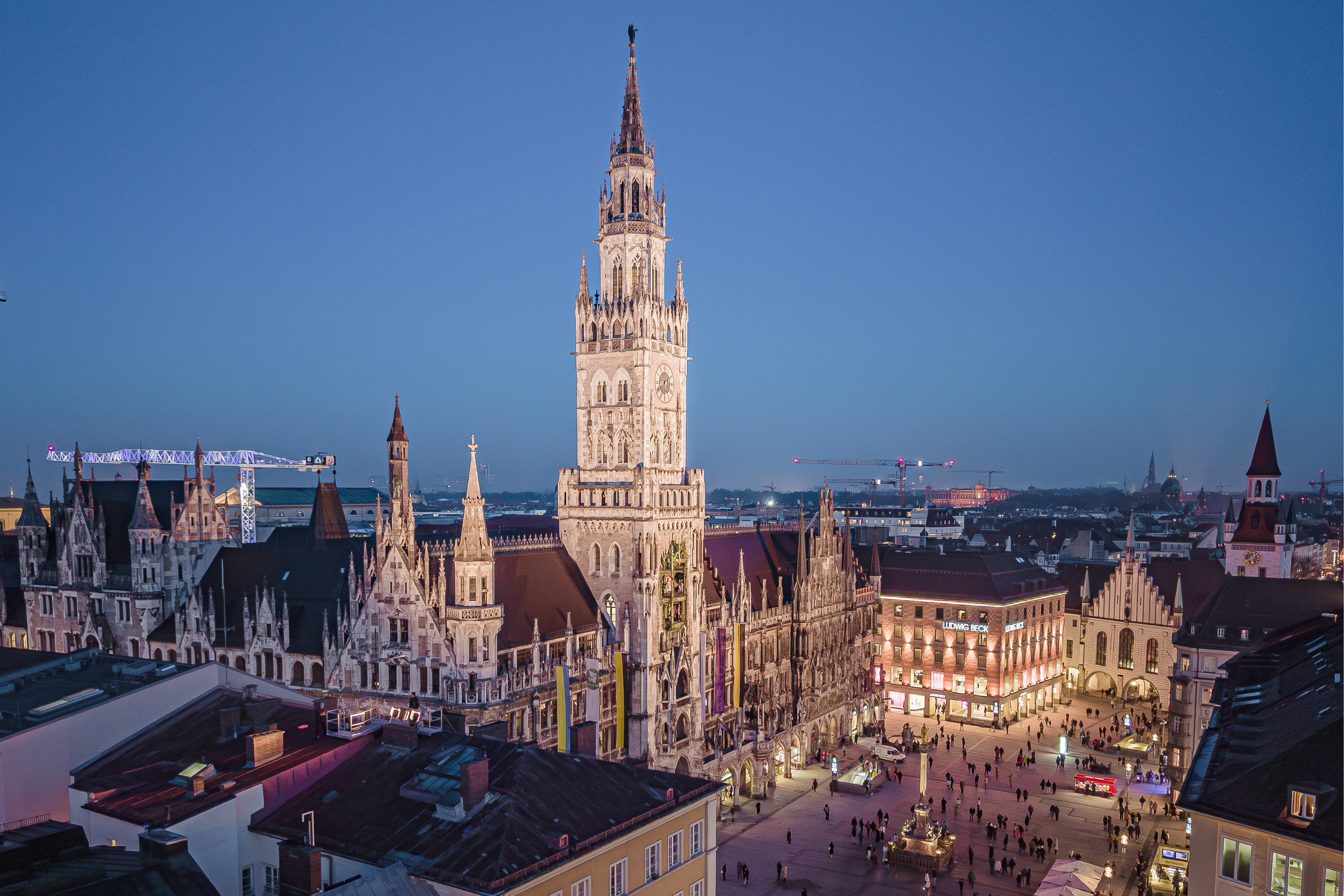 Munich’s landmarks glow in a new light. With a lighting concept that doesn’t outshine the city’s iconic skyline, but gently highlights it. The New Town Hall, the Cathedral Church of Our Lady (Frauenkirche), and St. Peter’s emerge as a harmonious ensemble: atmospheric, dignified, clear.