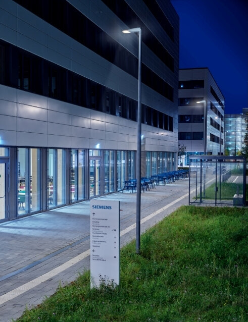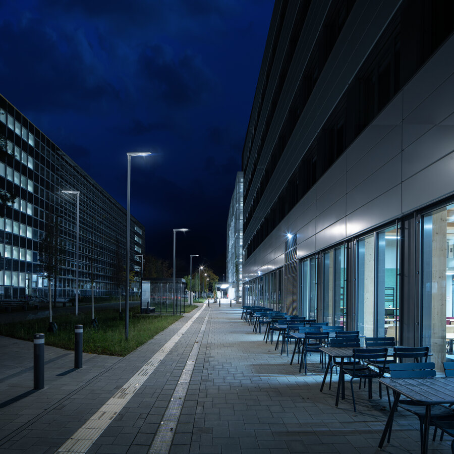 SL 11 iQ ensures a harmonious appearance and also provides clear orientation. Paths, squares and access areas are evenly lit, so that employees and visitors feel safe at all times.