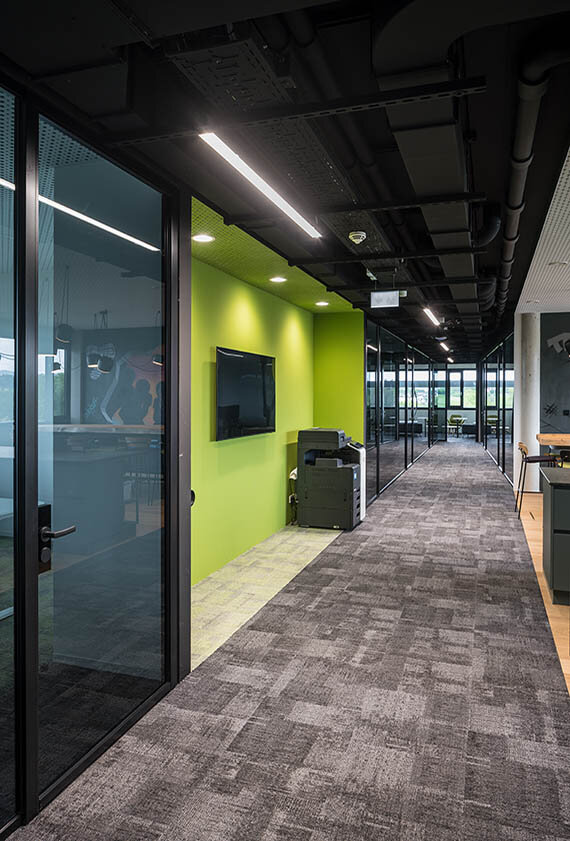 High-tech companies need high-tech equipment, also in terms of lighting. Because without the right light, architecture, technology and spaces for creativity are of limited use. The Austrian IT companies COUNT IT Group and ventopay have therefore equipped their new office building in the Softwarepark Hagenberg with lighting solutions from SITECO - in line with all the rules of the "New Work". Here, work and leisure merge: office space meets outdoor lounges, idea cubes and even a slide. In the offices, elegant black Silica® luminaires emphasize the open architecture and create a friendly atmosphere with glare-free light. Flexible arrangement of all workstations is possible underneath, ideal for agile project teams. Together with highly efficient Licross® continuous rows in the corridors and Ledvalux downlights, the implemented lighting concept also supports the sustainable design of the complex with energy-efficient technologies all around. A little bit of Google "Made in Austria" with SITECO.