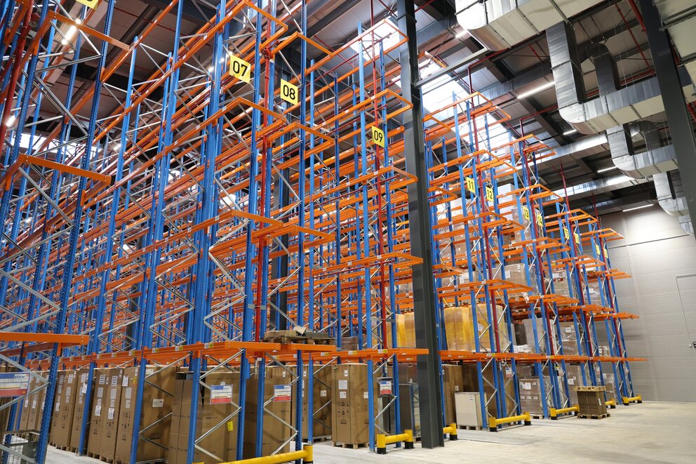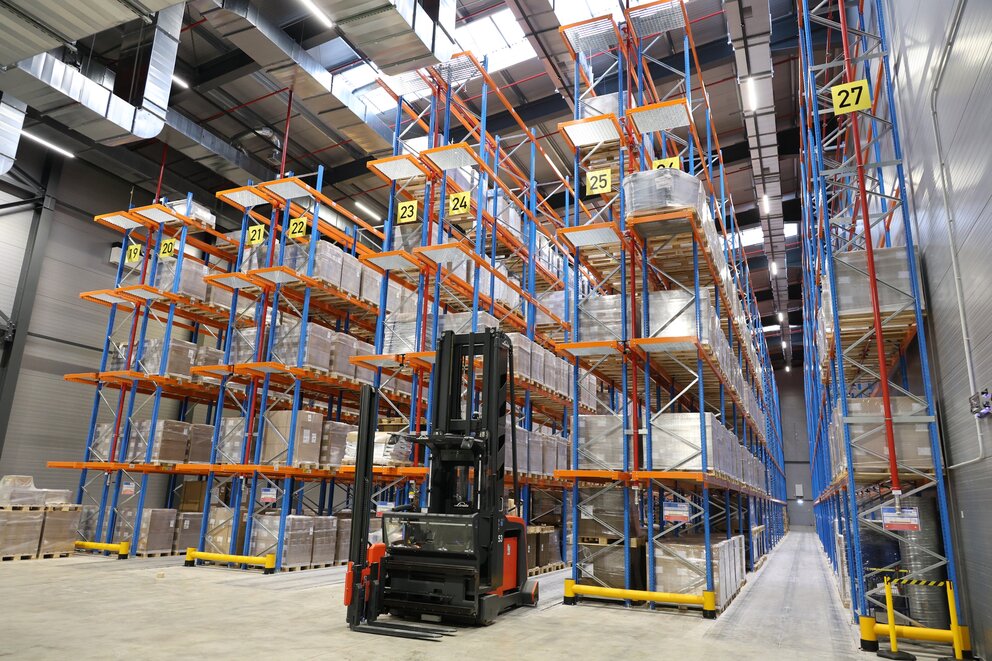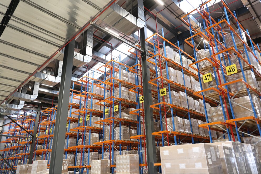 A key focus: the right working atmosphere for employees. The Licross 21 trunking system from SITECO ensures optimum lighting conditions – with low-glare, uniform illumination for safety and orientation in the high racking aisles.