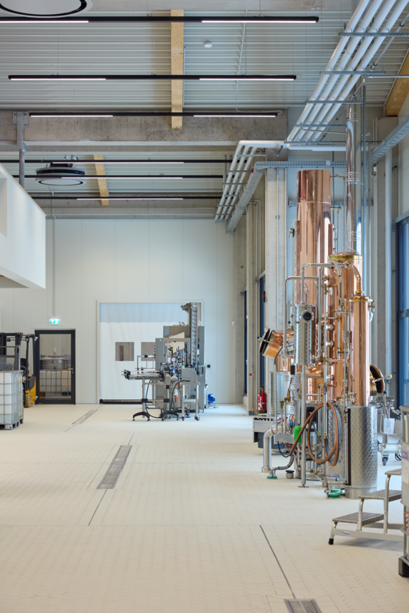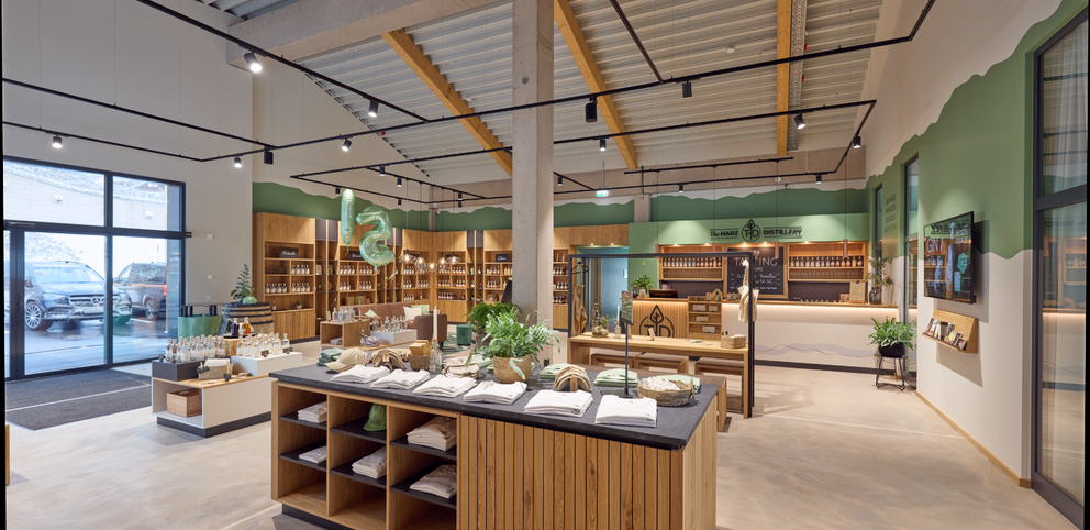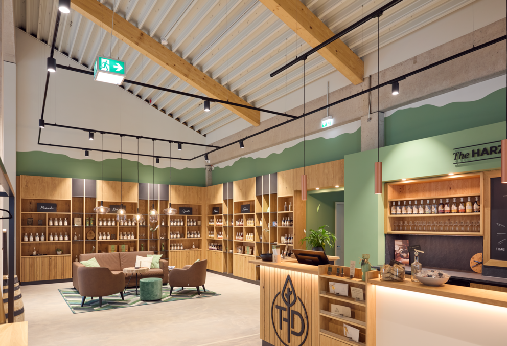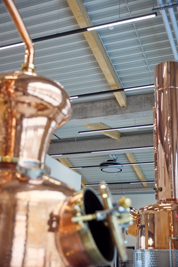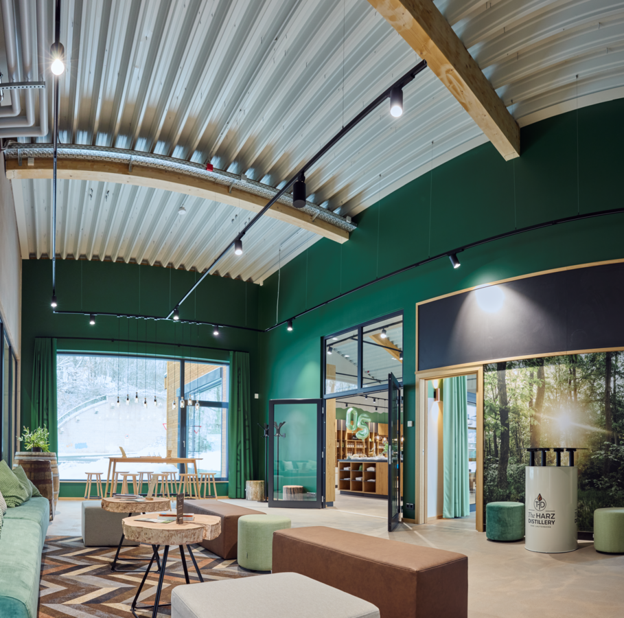 The HARZ DISTILLERY combines regional roots with contemporary distilling techniques. Guests experience handmade spirits on tours and tastings and gain genuine insights into the manufacturing process – with a view of the stills from the gallery. SITECO's holistic lighting concept perfectly showcases this blend of craftsmanship and experience.