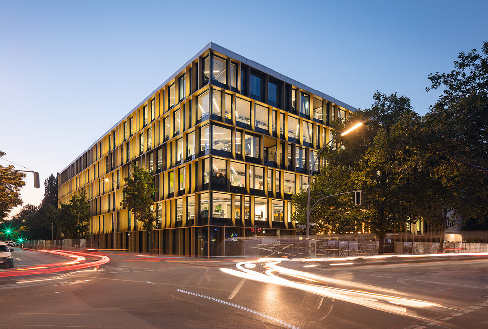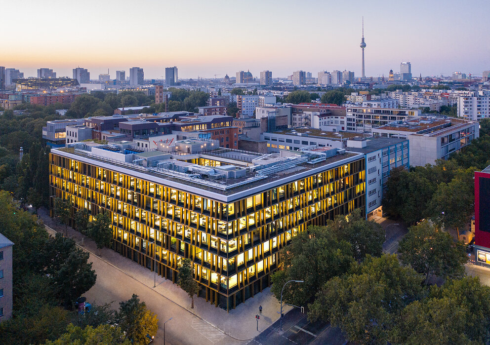 THE SHELF is one of the most distinctive office complexes in Berlin's Friedrichshain-Kreuzberg district, reinterpreting the typology of Berlin's historic commercial courtyards in a contemporary, urban way. A green inner courtyard forms the vibrant centre and, at the same time, a place of retreat for users. The clearly structured, warmly shimmering facade – inspired by a shelf – gives THE SHELF its name and sets a striking accent in the cityscape.