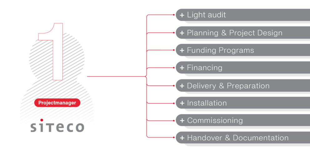 From lighting audits to financing – you decide, we deliver. SITECO Service manages as much of the project as you want.