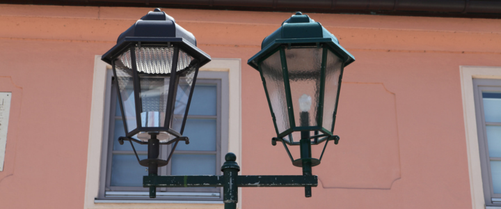 The Bergmeister factory's mast and wall luminaires are modelled on historic street lanterns. All Bergmeister luminaires, whether classic or modern, contain efficient and flexible lighting technology. This flexibility makes them unique, because existing luminaires can be updated to the latest technical standard at any time.