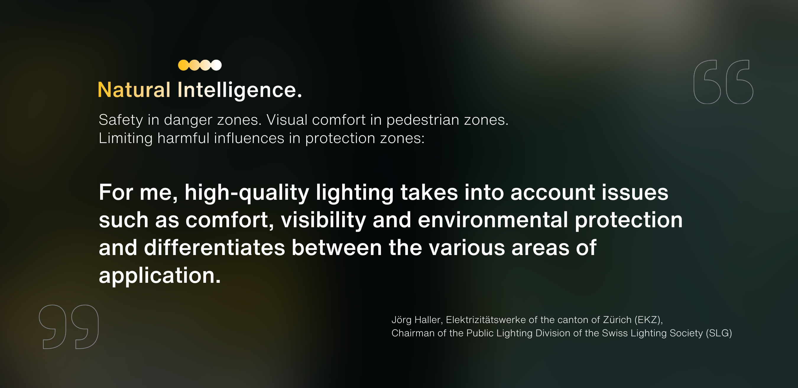 Lighting plays a central role in our daily lives. It's a crucial factor, especially when it comes to well-being and safety. It also helps us find our way around and shapes the appearance of our cities and towns. However, lighting should be used with care. We can help.