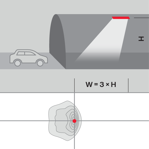 Asymmetrical distribution, also available as counter-beam optic