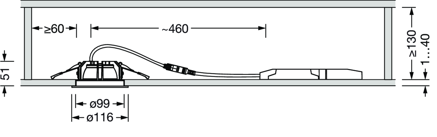 LED, Linse, Kunststoff, Reflektor, direkt medium strahlend, Einzelanordnung, Einbau, in der Decke, ø= 116mm