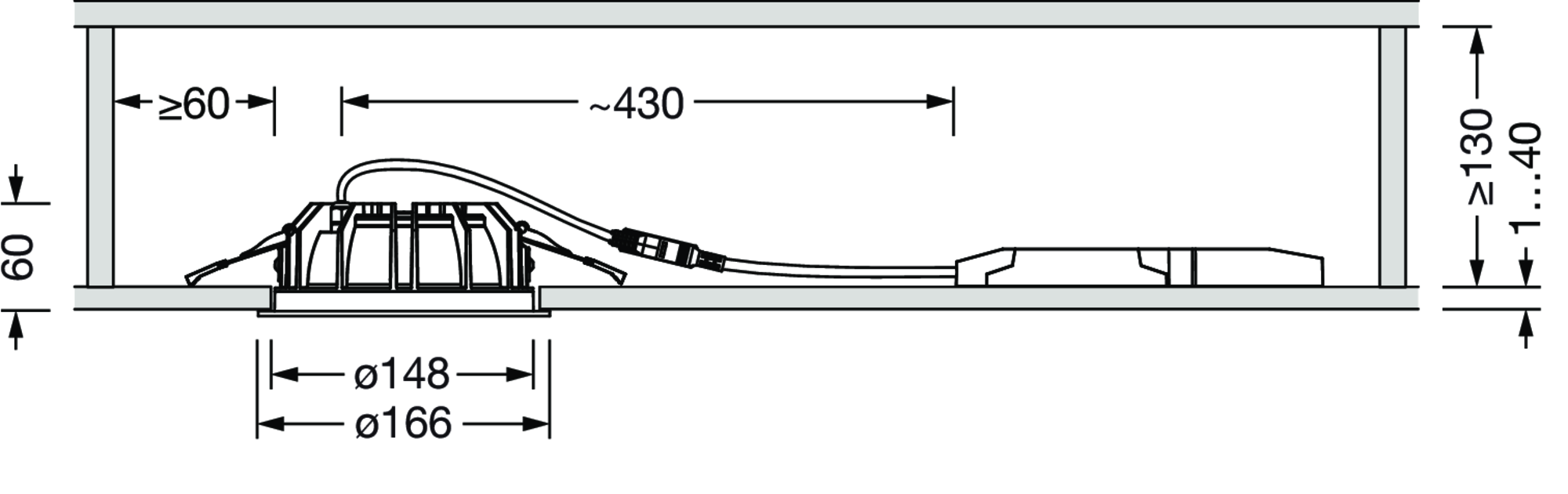 LED, Reflektor, direkt breit strahlend, Einzelanordnung, Einbau, in der Decke, ø= 166mm