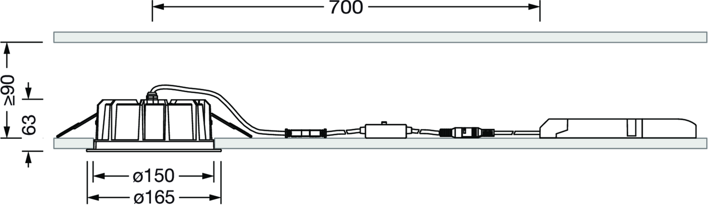 LED, Linse, PMMA, Reflektor, PC, direkt breit strahlend, Einzelanordnung, Einbau, in der Decke, ø= 165mm