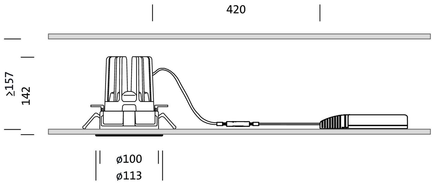 LED, Wallwasher, hochreflektierendem Aluminium, hochglänzend, Wallwasher - direkt asymmetrisch strahlend, Einzelanordnung, Einbau, in der Decke, ø= 114mm