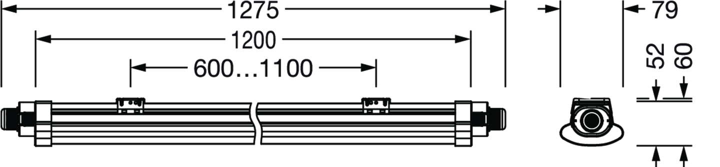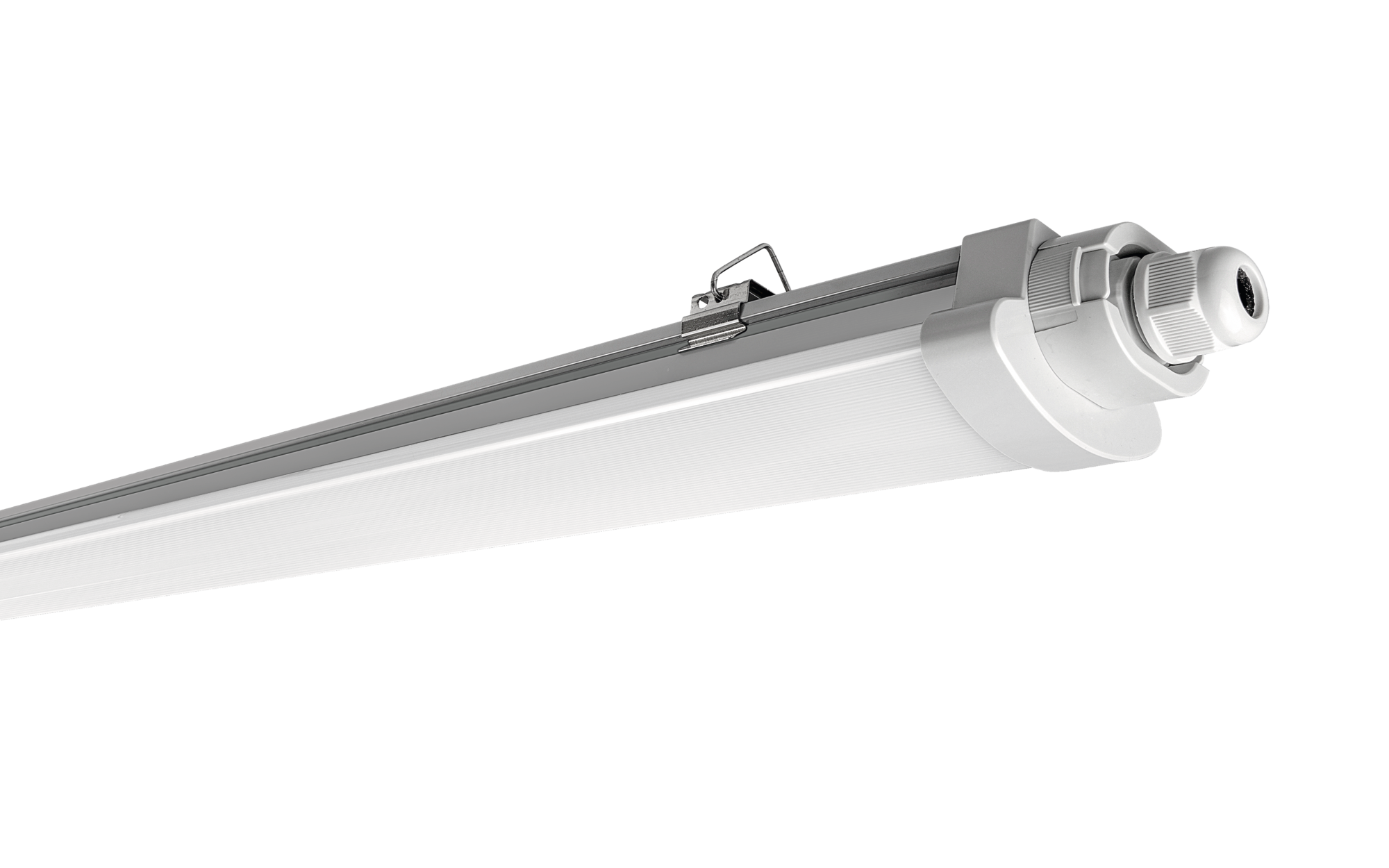 Monsun 41, Feuchtraumleuchte, primäre lichttechn. Abdeckung: Diffusor, aus PC, satiniert, Lichtaustritt: direkt strahlend, primäre Lichtcharakteristik: symmetrisch, Montageart: Anbau, abgehängte Montage, LED, Bemessungslichtstrom: 4.000lm, Lichtausbeute: 130lm/W, Lichtfarbe: 840, Farbtemperatur: 4000K, Vorschaltgerät: EIN/AUS Multilumen, mit Klemme, 3polig, Durchverdrahtung: 3x 1,5mm², Netzanschluss: 220..240V, AC, 50/60Hz, Bemessungsleistung: 30W, Gehäuse, Leuchtengehäuse, aus PC, grau, Gehäuse und Abdeckung unlösbar verbunden (sealed for life), Länge: 1.200mm, Breite: 79mm, Höhe: 52mm, Stirnwand, aus PC, grau, Deckenmontage-Element, aus Edelstahl (V2A), Schutzart (gesamt): IP65, Schutzklasse (gesamt): SK II (Schutzisoliert), Prüfzeichen: CE, UKCA, Schutzzeichen: D, Schlagfestigkeit: IK08, zul. Betriebsumgebungstemperatur: -20..+35°C, entspricht den Anforderungen von IFS (International Featured Standards) für Sicherheit und Qualität in der Lebensmittelindustrie, Kontaktieren Sie ihren Verkaufsberater, bevor Sie die Leuchten in Anwendungen mit unklarer chemischer Belastung, großen Temperaturschwankungen oder kondensatbildender Luftfeuchtigkeit einsetzen, Verpackungseinheit: 1 Stück
