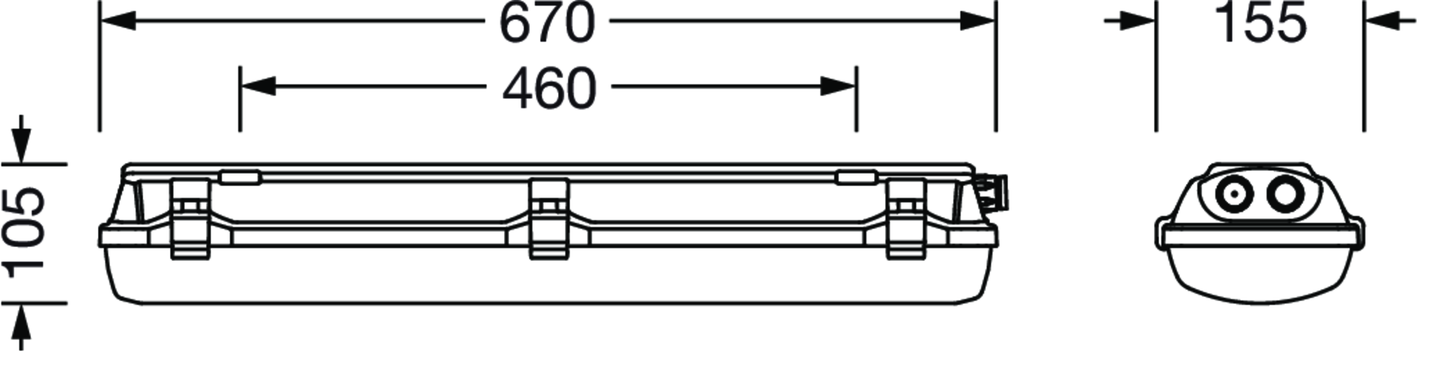 LED, EVG, mit Durchverdrahtung 5x 2,5mm², Abdeckung, Anbau, L= 670mm