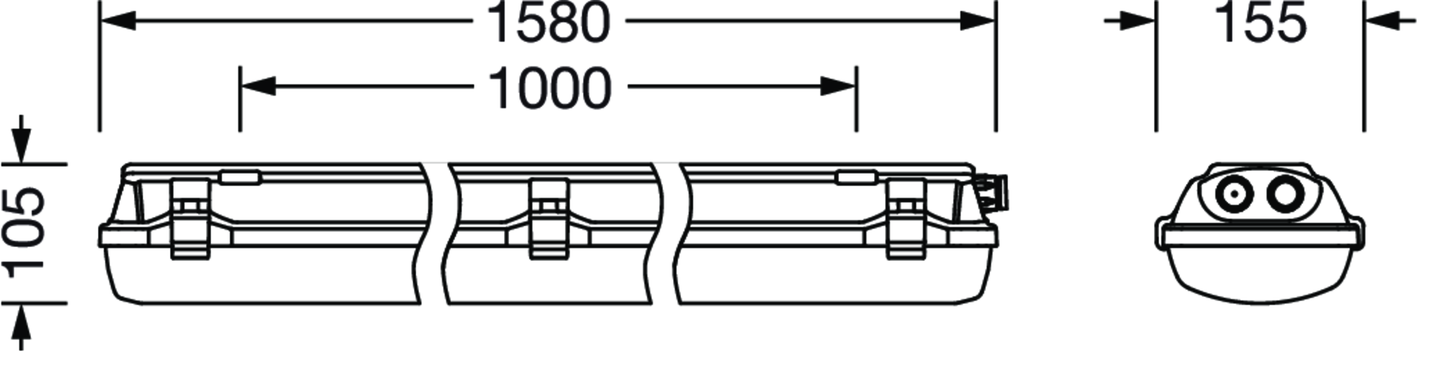 LED, EVG-DALI, mit Durch­ver­drahtung 7x 2,5mm², Abdeckung, Anbau, L= 1580mm