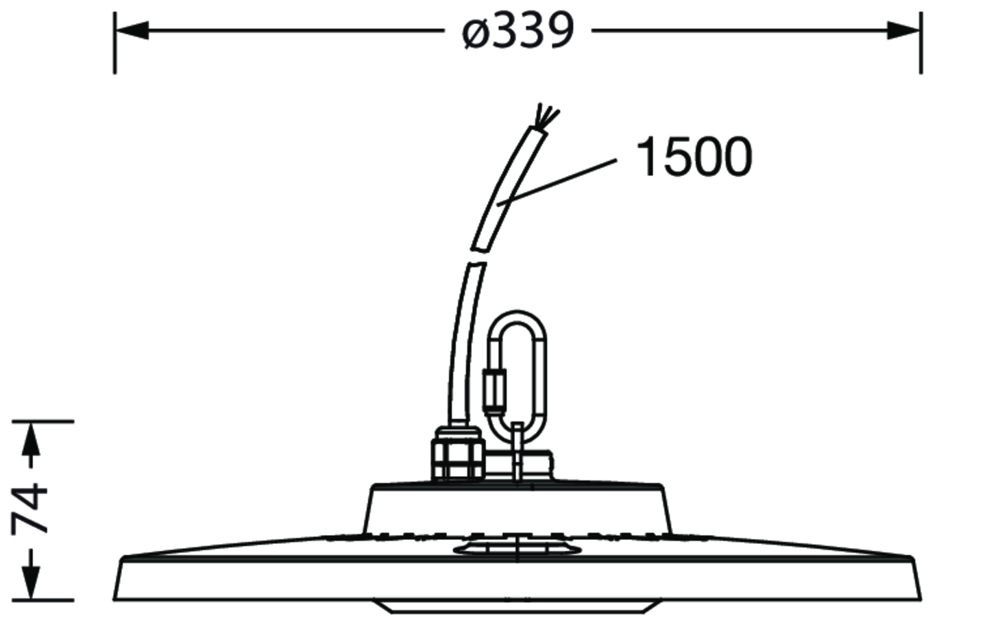 Highbay 31-S, Hallenleuchte, primäre Lichtlenkung mit Linse, aus PC, primäre lichttechn. Abdeckung: Abdeckscheibe, aus PC, klar, Lichtaustritt: direkt strahlend, primäre Lichtcharakteristik: rotations-symmetrisch, Montageart: abgehängte Montage, Anbau, LED, Bemessungslichtstrom: 14.000lm, Lichtausbeute: 150lm/W, Lichtfarbe: 840, Farbtemperatur: 4000K, Vorschaltgerät: EIN/AUS, mit Leitung, 3x 1,0mm², freie Aderenden, Netzanschluss: 220..240V, AC, 50/60Hz, Leitungslänge: 1,5m, Bemessungsleistung: 94W, Gehäuse, rotations-symmetrisch, aus Aluminium-Druckguss, pulverbeschichtet, graualuminium (RAL 9007), inkl. leuchtenseitigem Haken, inkl. Schraube, Durchmesser: 339mm, Schutzart (gesamt): IP65, Schutzklasse (gesamt): SK I (Schutzerdung), Prüfzeichen: CE, ENEC, UKCA, Schutzzeichen: D, Schlagfestigkeit: IK08, zul. Betriebsumgebungstemperatur: -30..+45°C, entspricht den Anforderungen von IFS (International Featured Standards) für Sicherheit und Qualität in der Lebensmittelindustrie, Verpackungseinheit: 1 Stück