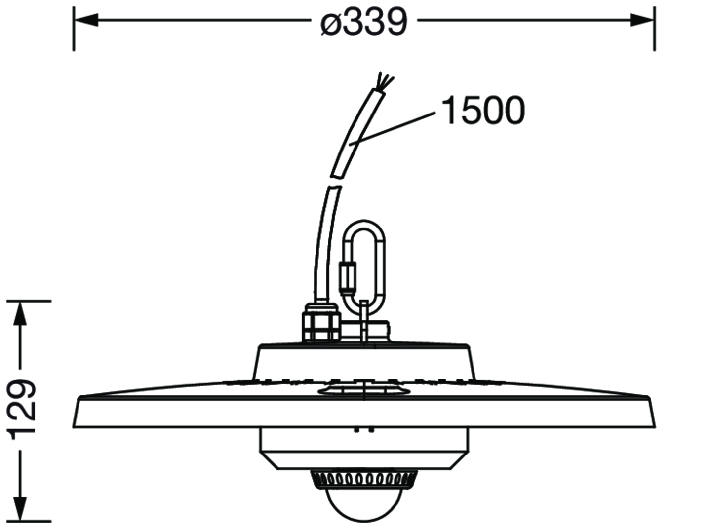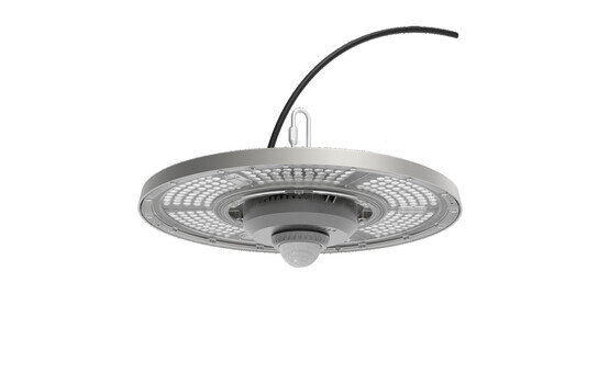 Highbay 31-S, Hallenleuchte, primäre Lichtlenkung mit Linse, aus PC, primäre lichttechn. Abdeckung: Abdeckscheibe, aus PC, klar, Lichtaustritt: direkt strahlend, primäre Licht­charakteristik: rotations-symmetrisch, Montageart: abgehängte Montage, Anbau, LED, Bemessungs­lichtstrom: 14.000lm, Licht­ausbeute: 150lm/W, Lichtfarbe: 840, Farb­temperatur: 4000K, Vorschaltgerät: EIN/AUS, mit Leitung, 3x 1,0mm², freie Aderenden, Netz­anschluss: 220..240V, AC, 50/60Hz, Leitungslänge: 1,5m, Bemessungs­leistung: 94W, Gehäuse, rotations-symmetrisch, aus Aluminium-Druckguss, pulver­beschichtet, graualuminium (RAL 9007), inkl. leuchtenseitigem Haken, inkl. Schraube, Durchmesser: 339mm, PIR-Sensor, Schutzart (gesamt): IP65, Schutzklasse (gesamt): SK I (Schutzerdung), Prüfzeichen: CE, ENEC, UKCA, Schutzzeichen: D, Schlag­festigkeit: IK08, zul. Betriebsumgebungstemperatur: -30..+45°C, entspricht den Anforderungen von IFS (International Featured Standards) für Sicherheit und Qualität in der Lebens­mittel­industrie, Verpackungs­einheit: 1 Stück