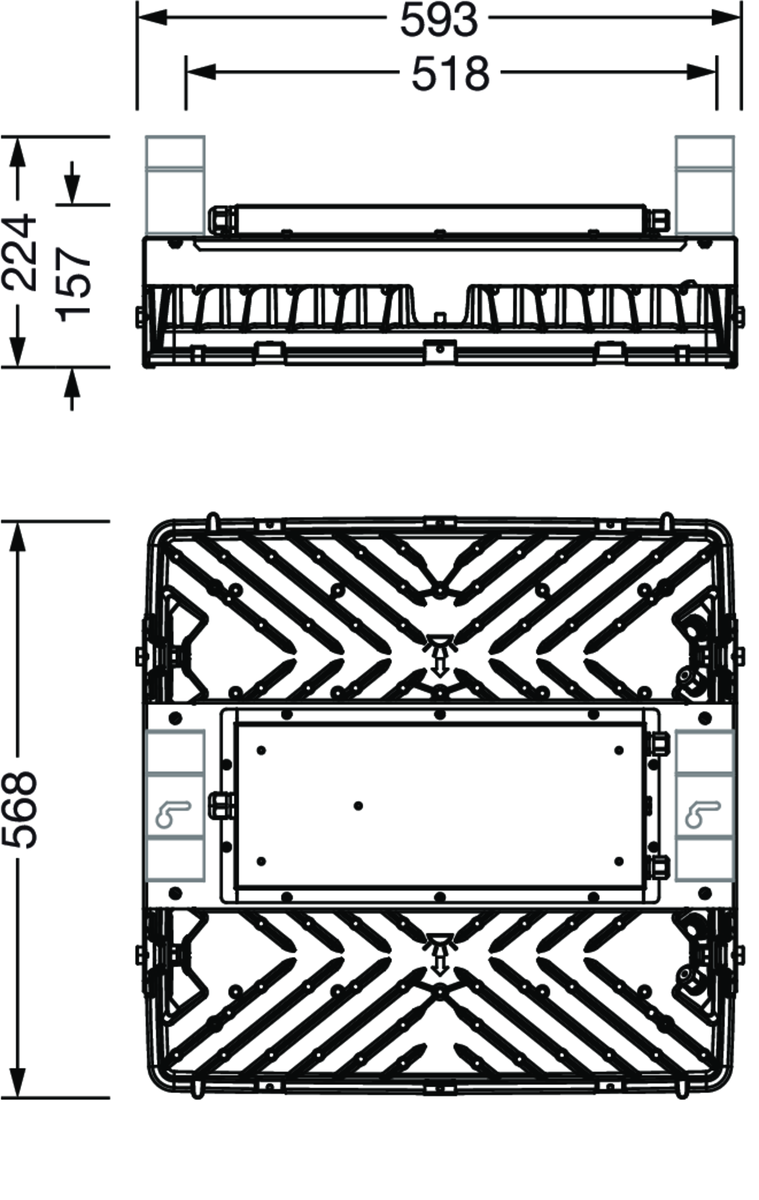 Highbay 11Xtreme, Hallenleuchte, primäre Lichtlenkung mit Linse, aus PMMA, primäre lichttechn. Abdeckung: Abdeckung, aus Einscheiben-Sicherheitsglas, Lichtaustritt: direkt strahlend, primäre Lichtcharakteristik: symmetrisch, Montageart: abgehängte Montage, Anbau, 2x LED Modul,für 1x 2x LED, Bemessungslichtstrom: 75.000lm, Lichtausbeute: 178lm/W, Lichtfarbe: 840, Farbtemperatur: 4000K, Vorschaltgerät: DALI 2 (mit zwei DALI-Adressen), mit Leitung H07RN-F 5x 1,5mm², Netzanschluss: 220..240V, AC, 50/60Hz, Leitungslänge: 1,5m, Bemessungsleistung: 422W, Leuchtengehäuse, aus Aluminium-Druckguss, teilweise lackiert, silber, Länge: 595mm, Breite: 560mm, Höhe: 195mm, Schutzart (gesamt): IP66, Schutzklasse (gesamt): SK I (Schutzerdung), Prüfzeichen: CE, ENEC, UKCA, Schutzzeichen: D, Ballwurfsicherheit: ballwurfsicher gemäß DIN VDE 0710 Teil 13 (bei Kettenabhängung), Schlagfestigkeit: IK08, zul. Betriebsumgebungstemperatur: -25..+45°C, bei Deckenanbau Reduzierung der zulässigen maximalen Umgebungstemperatur um 5°C, Verpackungseinheit: 1 Stück