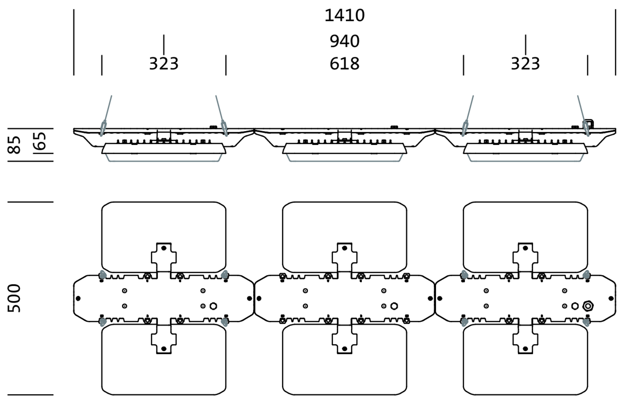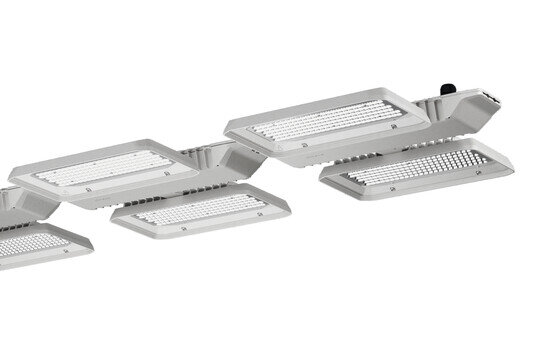 Highbay 11, Hallenleuchte, primäre Lichtlenkung mit Linse, aus PMMA, Lichtaustritt: direkt strahlend, primäre Licht­charakteristik: symmetrisch, Montageart: abgehängte Montage, für 3x 2x LED, Bemessungs­lichtstrom: 49.690lm, Licht­ausbeute: 175lm/W, Lichtfarbe: 840, Farb­temperatur: 4000K, Vorschaltgerät: DALI (mit drei DALI-Adressen), mit Klemme, 5polig, max. 2,5mm², Netz­anschluss: 230..240V, AC, 50/60Hz, Bemessungs­leistung: 284W, LED-Einheit, aus Aluminium-Druckguss, unbeschichtet, perlgestrahlt, silber, Länge: 1.410mm, Breite: 500mm, Höhe: 65mm, Gehäuse, aus Aluminium-Druckguss, unbehandelt, perlgestrahlt, silber, Schutzart (gesamt): IP65, Schutzklasse (gesamt): SK I (Schutzerdung), Prüfzeichen: CE, ENEC, VDE, UKCA, Schutzzeichen: D, Schlag­festigkeit: IK08 mit Glas- oder PC-Abdeckung, zul. Betriebsumgebungstemperatur: -35..+45°C, entspricht den Anforderungen von IFS (International Featured Standards) für Sicherheit und Qualität in der Lebens­mittel­industrie, bei Deckenanbau Reduzierung der zulässigen maximalen Umgebungs­temperatur um 5°C, Verpackungs­einheit: 1 Stück