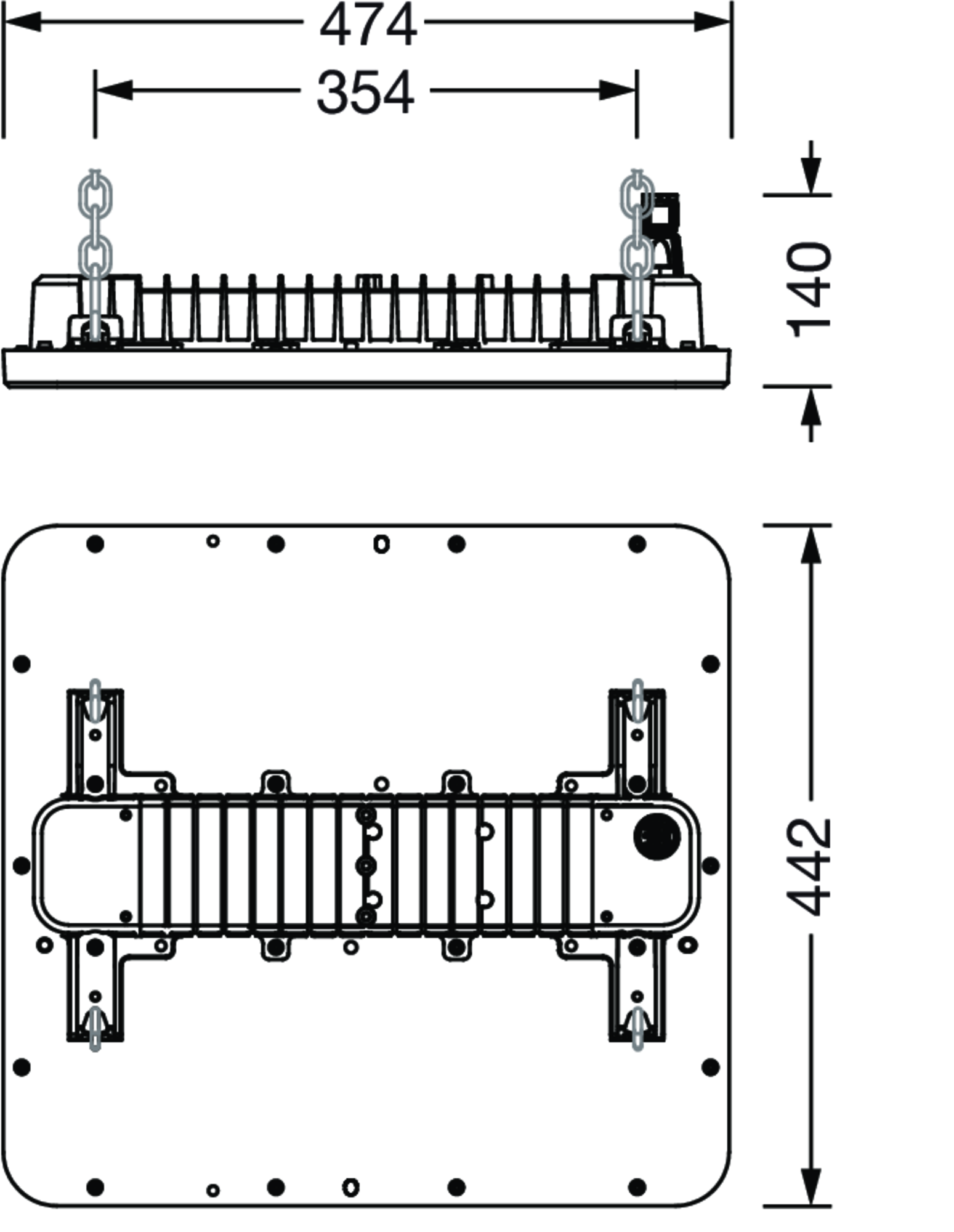 Hallenleuchte Highbay 11 midi; direkt symmetrisch eng strahlend, Lichtlenkung mit Linse aus PMMA; UGR ≤ 22 (X = 4H | Y = 8H | S = 0,25H | Reflexionsgrade 70/50/20); Lichtstrom: 28.000lm; Lichtfarbe: 840, Farbtemperatur: 4000K, MacAdam ≤ 2 SDCM (initial), Farbwiedergabe: CRI > 80; Lichtausbeute: 191lm/W; Bemessungslebensdauer: 100.000h (L95) bei UT= 25°C; Ansteuerung: DALI 2; Leuchtenanschluss: Klemme, 5polig, max. 2,5mm² (Leitungseinführung für eine Leitung, Ø 8, 5..16mm); Netzanschluss: 230..240V, AC/DC 0/50..60Hz; Anschlussleistung: 146,6W; Schutzart (gesamt): IP66; Schutzklasse (gesamt): SK I (Schutzerdung); Schutzzeichen: D; Schlagfestigkeit: IK08; Prüfzeichen: CE, ENEC, VDE, UKCA; Leuchte für Zentralbatterieanlagen gemäß EN 60598-2-22, interne Verdrahtung halogenfrei; Leuchte Für den Einsatz in der Lebensmittelindustrie nach den Vorgaben von IFS-Food, HACCP und/oder BRC geeignet; LABS-Konformität geprüft gemäß VDMA 24364:2018-05; Gehäuserahmen aus Hochleistungskunststoff PA6, verkehrsweiß matt (RAL 9016); Abdeckung aus PMMA; Abmessung (LxBxH): 474 x 442 x 72mm; zul. Betriebsumgebungstemperatur: -40..+50°C (bei Deckenanbau Reduzierung der zulässigen maximalen Umgebungstemperatur um 5°C); Verpackungseinheit: 1 Stück; (Lieferung ohne Zubehör; Montagezubehör bitte zusätzlich bestellen)