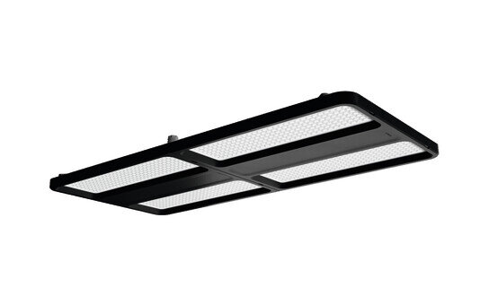 luminaire pour halls Highbay 11 maxi; direct symétrique distribution extensive, orientation de la lumière avec lentille en PMMA; UGR ≤ 22 (X = 4H | Y = 8H | S = 0,25H | facteurs de réflexion 70/50/20) ; flux lumineux: 36.000lm; température de couleur: 840, température de couleur: 4000K, MacAdam ≤ 2 SDCM (initial), rendu des couleurs: IRC > 80; rendement lumineux: 202,6lm/W; durée de vie assignée: 100.000h (L95) à TA= 25°C; système de commande: DALI 2; raccordement du luminaire: borne, 5 broches, 2,5mm² max. (entrée de câble pour un câble, Ø 8,5..16mm); raccordement au secteur: 230..240V, AC/DC 0/50..60Hz; puissance de raccordement: 177,7W; degré de protection (total): IP40; classe de protection (total): classe de protection I (mise à la terre); symbole de protection: D; résistance aux chocs: IK08; marquage: CE, ENEC, VDE, UKCA; luminaire pour une installation à batterie centrale conforme EN 60598-2-22, câblage interne sans halogène; luminaire conformité LABS testée selon VDMA 24364:2018-05; résistant aux impacts de balles uniquement avec l'utilisation des accessoires de montage correspondants; Adapté à l'industrie agroalimentaire selon les normes IFS-Food, HACCP et/ou BRC; cadre de boîtier en plastique haute performance PA6, noir foncé mat (RAL 9005); cache en PMMA; dimensions (LxlxH): 946 x 442 x 72mm; température ambiante de fonctionnement admissible: -40..+55°C (en cas de pose en saillie au plafond, réduction de la température ambiante maximale admissible de 5°C); unité d'emballage: 1 pièce; (livraison sans accessoires ; veuillez commander les accessoires de montage séparément)