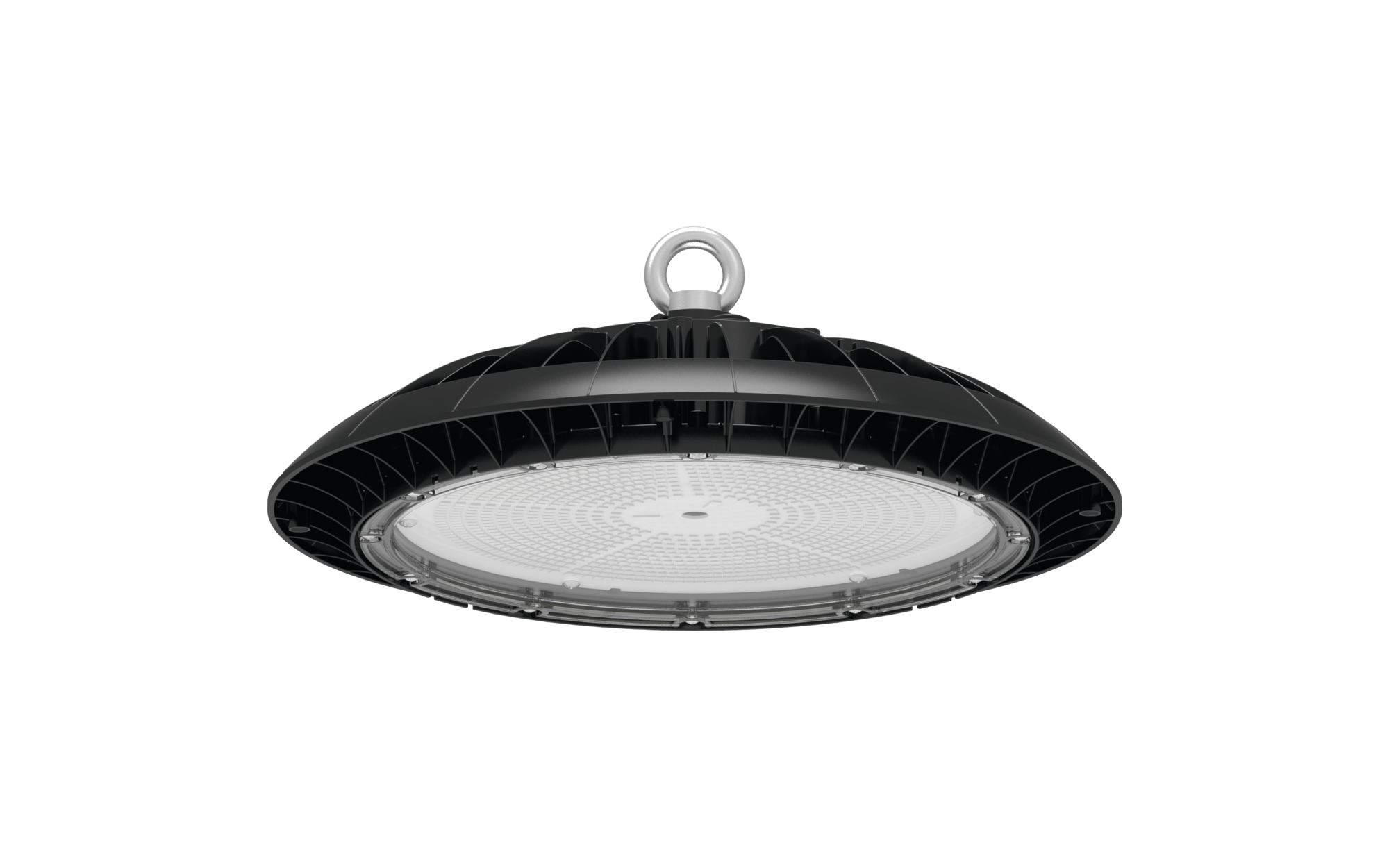 Highbay 42-L, Hallenleuchte, primäre Lichtlenkung mit Linse, aus PC, primäre lichttechn. Abdeckung: Abdeckscheibe, aus PC, klar, Lichtaustritt: direkt strahlend, primäre Lichtcharakteristik: rotations-symmetrisch, Montageart: abgehängte Montage, Anbau, LED, Bemessungslichtstrom: 28.000lm, Lichtausbeute: 160lm/W, Lichtfarbe: 857, Farbtemperatur: 5700K, Vorschaltgerät: EIN/AUS Multilumen, mit Leitung, 3x 1,0mm², freie Aderenden, Netzanschluss: 230V, AC, 50Hz, Leitungslänge: 1,5m, Bemessungsleistung: 175W, Gehäuse, rotations-symmetrisch, aus Aluminium-Druckguss, schwarz, inkl. leuchtenseitigem Haken, Durchmesser: 305mm, Höhe: 117mm, Schutzart (gesamt): IP65, Schutzklasse (gesamt): SK I (Schutzerdung), Prüfzeichen: CE, UKCA, Schutzzeichen: D, Schlagfestigkeit: IK08, zul. Betriebsumgebungstemperatur: -20..+40°C, entspricht den Anforderungen von IFS (International Featured Standards) für Sicherheit und Qualität in der Lebensmittelindustrie, Verpackungseinheit: 1 Stück