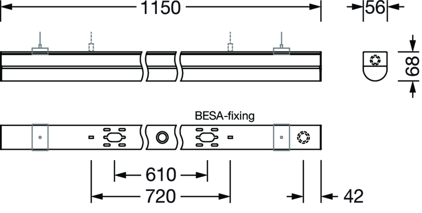 Ecopack 31, Diffusorleuchte, primäre lichttechn. Abdeckung: Abdeckung, aus PC, satiniert, Lichtaustritt: direkt strahlend, primäre Lichtcharakteristik: symmetrisch, Montageart: Anbau, LED, Bemessungslichtstrom: 4.800lm, Lichtausbeute: 135lm/W, Lichtfarbe: 830/840/850, Farbtemperatur: 3000/4000/5000K, Vorschaltgerät: EIN/AUS Multilumen, mit Klemme, 4polig, Netzanschluss: 220..240V, AC, 50/60Hz, Bemessungsleistung: 35W, Konverter,Vorschaltgerät: Einzelbatterie-Element, Akku: LiFePO4, 3Ah, Gehäuse, aus Aluminium, verkehrsweiß (RAL 9016), Länge: 1.159mm, Breite: 56mm, Höhe: 68mm, Stirnwand, aus PC, weiß, Schutzart (gesamt): IP20, Schutzklasse (gesamt): SK I (Schutzerdung), Prüfzeichen: CE, Schlagfestigkeit: IK06, zul. Betriebsumgebungstemperatur: 0..+40°C, Norm: EN 60598-2-22, Verpackungseinheit: 1 Stück