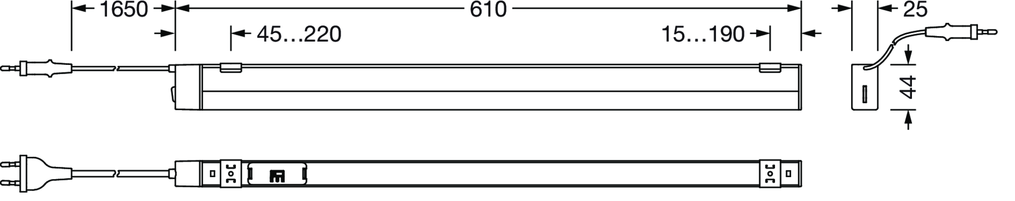 Batten 41-N, Lichtleiste, primäre lichttechn. Abdeckung: Abdeckung, aus PC, satiniert, Lichtaustritt: direkt strahlend, primäre Lichtcharakteristik: symmetrisch, Montageart: Anbau, LED, Bemessungslichtstrom: 1.000lm, Lichtausbeute: 120lm/W, Lichtfarbe: 830/840/850, Farbtemperatur: 3000/4000/5000K, Vorschaltgerät: EIN/AUS, mit Leitung mit Stecker, Netzanschluss: 220..240V, AC, 50/60Hz, Bemessungsleistung: 8,3W, Gehäuse, aus Aluminium, silber, Länge: 610mm, Breite: 25mm, Höhe: 44mm, Stirnwand, aus PC, weiß, Schutzart (gesamt): IP20, Schutzklasse (gesamt): SK II (Schutzisoliert), Prüfzeichen: CE, zul. Betriebsumgebungstemperatur: -20..+40°C, Verpackungseinheit: 1 Stück