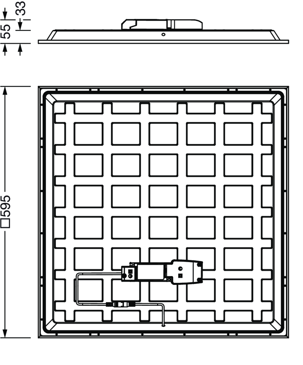 Apollon 21 square, Office-Leuchte, primäre lichttechn. Abdeckung: mikroprismatische Abdeckung, aus PMMA, BAP65 (L= 3000cd/m²), Lichtaustritt: direkt strahlend, primäre Licht­charakteristik: symmetrisch, Montageart: Einlegemontage, Einbau, LED, Bemessungs­lichtstrom: 4.200lm, Licht­ausbeute: 170lm/W, Lichtfarbe: 840, Farb­temperatur: 4000K, Vorschaltgerät: DALI 2, Multilumen, mit Klemme, 5polig, Netz­anschluss: 220..240V, AC/DC, 0/50..60Hz, Bemessungs­leistung: 24,7W, geeignet für Einzelbatterie-Notlichtelement 59MQE002602A mit integrierter Selbsttestfunktion gemäß EN 60598-2-22, Gehäuse, aus Aluminium, lackiert, verkehrsweiß (RAL 9016), Modul: M600, Länge: 595mm, Breite: 595mm, Höhe: 55mm, Gehäuseoberseite, aus Stahlblech, verzinkt, Schutzart (gesamt): IP20, Schutzart (Lampenraum, raumseitig): IP54, Schutzklasse (gesamt): SK II (Schutzisoliert), Prüfzeichen: CE, ENEC, UKCA, Schlag­festigkeit: IK03, zul. Betriebsumgebungstemperatur: -20..+45°C, Norm: EN 60598-2-22, entspricht den Anforderungen von IFS (International Featured Standards) für Sicherheit und Qualität in der Lebens­mittel­industrie, Verpackungs­einheit: 1 Stück