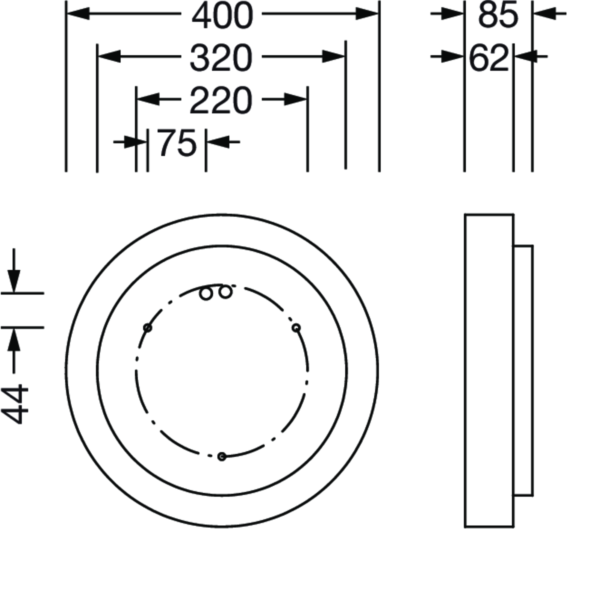 Round 21 S, Wand- und Deckenleuchte, primäre lichttechn. Abdeckung: mikroprismatische Abdeckung, aus PMMA, klar, BAP65 (L= 3000cd/m²), Lichtaustritt: direkt/indirekt strahlend, primäre Lichtcharakteristik: symmetrisch, Montageart: Anbau, abgehängte Montage, LED, Bemessungslichtstrom: 3.800lm, Lichtausbeute: 135lm/W, Lichtfarbe: 840, Farbtemperatur: 4000K, Vorschaltgerät: DALI 2, mit Klemme, 5polig, Netzanschluss: 230V, AC, 50/60Hz, Bemessungsleistung: 28,3W, Gehäuse, aus Aluminium, lackiert, weiß, Durchmesser: 400mm, Höhe: 62mm, Schutzart (gesamt): IP40, Schutzklasse (gesamt): SK I (Schutzerdung), Prüfzeichen: CE, Schlagfestigkeit: IK04, zul. Betriebsumgebungstemperatur: -10..+35°C, Verpackungseinheit: 1 Stück