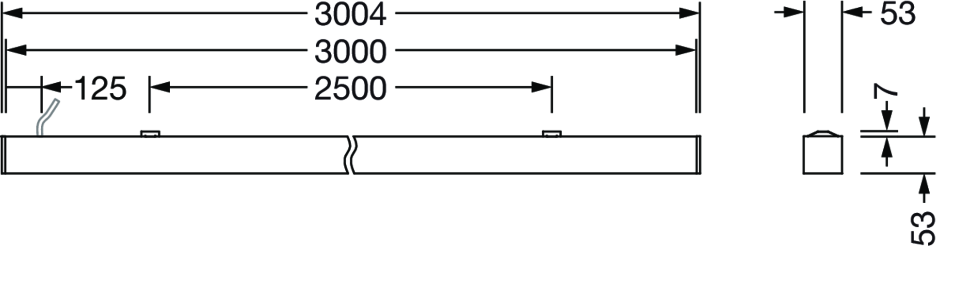 Office-Leuchte, verkehrsweiß (RAL 9016), DALI 2, 6000lm, 830, 3004x53mm, Anschluss: Klemme
