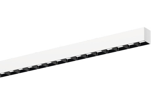 Silica 21 Prismatic, Office-Leuchte, primäre Lichtlenkung mit Darklight-Reflektor, aus PMMA, schwarz, BAP65 (L= 3000cd/m²), Lichtaustritt: direkt strahlend, primäre Lichtcharakteristik: symmetrisch, Montageart: Anbau, LED, Bemessungslichtstrom: 5.400lm, Lichtausbeute: 157lm/W, Lichtfarbe: 830, Farbtemperatur: 3000K, Vorschaltgerät: DALI 2, mit Klemme, 3+2polig, max. 2,5mm², Netzanschluss: 220..240V, AC, 50/60Hz, Bemessungsleistung: 34,3W, Leuchtengehäuse, aus Aluminium, verkehrsweiß (RAL 9016), Länge: 1.504mm, Breite: 53mm, Höhe: 53mm, Schutzart (gesamt): IP20, Schutzklasse (gesamt): SK I (Schutzerdung), Prüfzeichen: CE, zul. Betriebsumgebungstemperatur: 0..+35°C, Norm: EN 50419, Verpackungseinheit: 1 Stück
