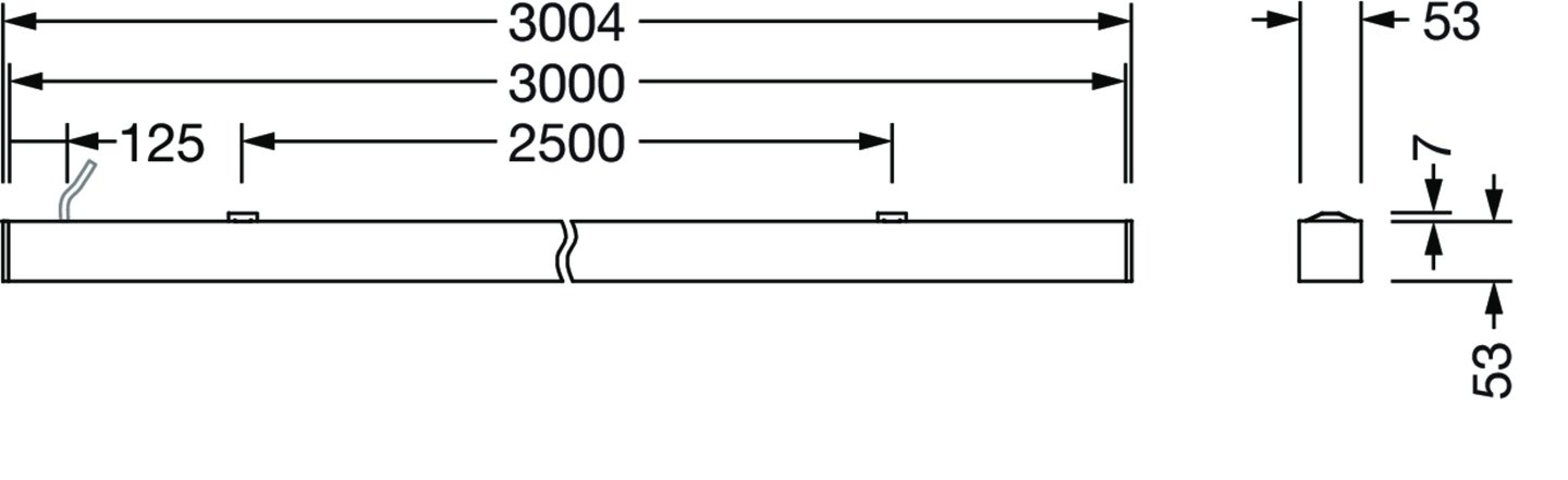 Office-Leuchte, tiefschwarz matt (RAL 9005), DALI DT8, 9300lm, 8tw, 3004x53mm, Anschluss: Klemme