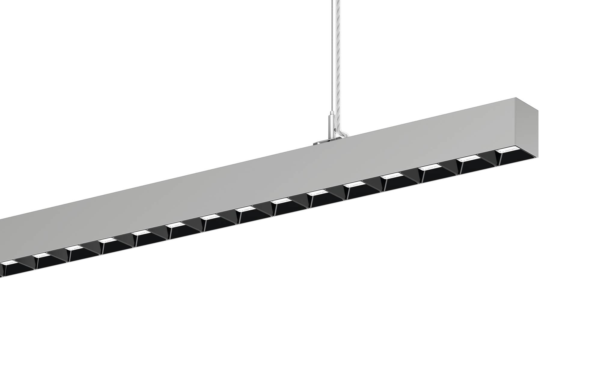 Silica 21, Office-Leuchte, primäre Lichtlenkung mit Darklight-Reflektor, aus PMMA, schwarz, BAP65 (L= 3000cd/m²), Lichtaustritt: direkt/indirekt strahlend, primäre Lichtcharakteristik: symmetrisch, Montageart: abgehängte Montage, LED, Bemessungslichtstrom: 9.110lm, Lichtausbeute: 156lm/W, Lichtfarbe: 830, Farbtemperatur: 3000K, Vorschaltgerät: DALI 2, mit Klemme, 3+2polig, max. 2,5mm², Netzanschluss: 220..240V, AC, 50/60Hz, Bemessungsleistung: 58,5W, Leuchtengehäuse, aus Aluminium, weißaluminium (RAL 9006), Länge: 1.504mm, Breite: 53mm, Höhe: 53mm, Schutzart (gesamt): IP20, Schutzklasse (gesamt): SK I (Schutzerdung), Prüfzeichen: CE, zul. Betriebsumgebungstemperatur: 0..+35°C, Norm: EN 50419, Verpackungseinheit: 1 Stück