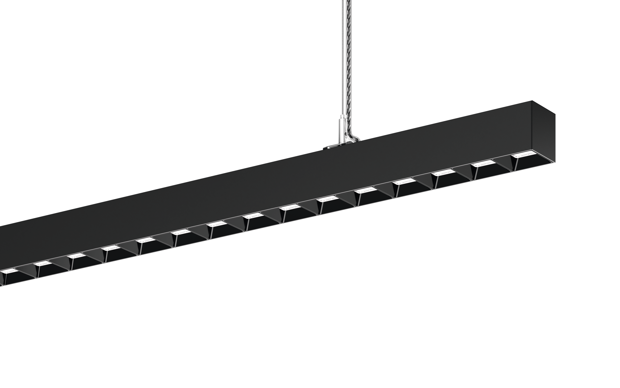 Silica 21, Office-Leuchte, primäre Lichtlenkung mit Darklight-Reflektor, aus PMMA, schwarz, BAP65 (L= 3000cd/m²), Lichtaustritt: direkt/indirekt strahlend, primäre Licht­charakteristik: symmetrisch, Montageart: abgehängte Montage, LED, Bemessungs­lichtstrom: 9.110lm, Licht­ausbeute: 167lm/W, Lichtfarbe: 840, Farb­temperatur: 4000K, Vorschaltgerät: DALI 2, mit Klemme, 3+2polig, max. 2,5mm², Netz­anschluss: 220..240V, AC, 50/60Hz, Bemessungs­leistung: 54,7W, Leuchten­gehäuse, aus Aluminium, tiefschwarz matt (RAL 9005), Länge: 1.504mm, Breite: 53mm, Höhe: 53mm, Schutzart (gesamt): IP20, Schutzklasse (gesamt): SK I (Schutzerdung), Prüfzeichen: CE, zul. Betriebsumgebungstemperatur: 0..+35°C, Norm: EN 50419, Verpackungs­einheit: 1 Stück