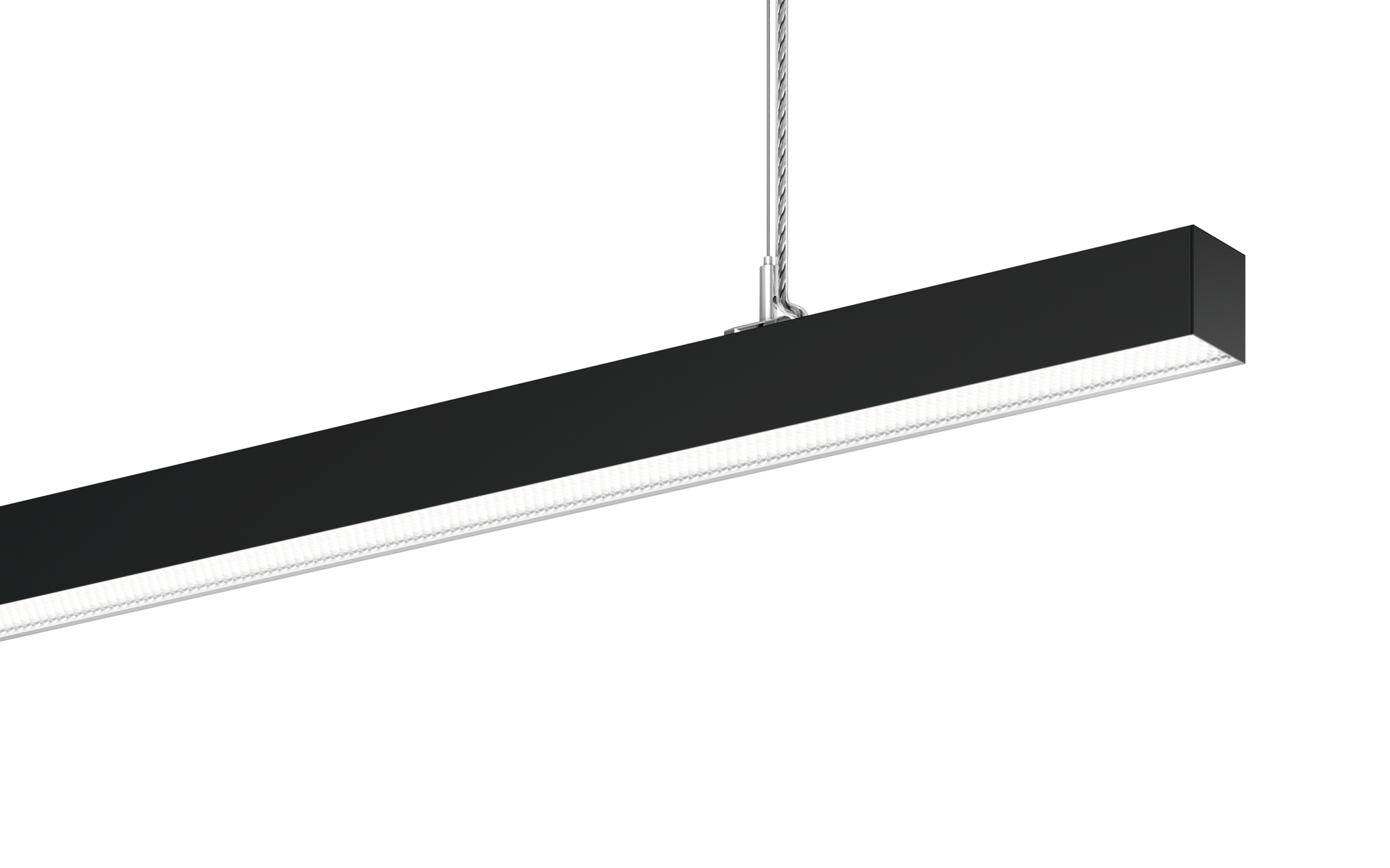 Silica 21 Linear Prismatic, Office-Leuchte, primäre lichttechn. Abdeckung: Prismenscheibe, aus PMMA, BAP65 (L= 3000cd/m²), Lichtaustritt: direkt/indirekt strahlend, primäre Licht­charakteristik: symmetrisch, Montageart: abgehängte Montage, LED, Bemessungs­lichtstrom: 7.390lm, Licht­ausbeute: 143lm/W, Lichtfarbe: 830, Farb­temperatur: 3000K, Vorschaltgerät: DALI 2, mit Klemme, 3+2polig, max. 2,5mm², Netz­anschluss: 220..240V, AC, 50/60Hz, Bemessungs­leistung: 51,6W, Leuchten­gehäuse, aus Aluminium, tiefschwarz matt (RAL 9005), Länge: 1.504mm, Breite: 53mm, Höhe: 53mm, Schutzart (gesamt): IP20, Schutzklasse (gesamt): SK I (Schutzerdung), Prüfzeichen: CE, zul. Betriebsumgebungstemperatur: 0..+35°C, Norm: EN 50419, Verpackungs­einheit: 1 Stück